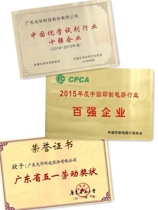 30多年來,光華科技一直專注于“高性能電子化學品”和“高質量化學試劑”為主導的專用化學品產業領域,在PCB行業及化學試劑行業獲得了社會的普遍認可: