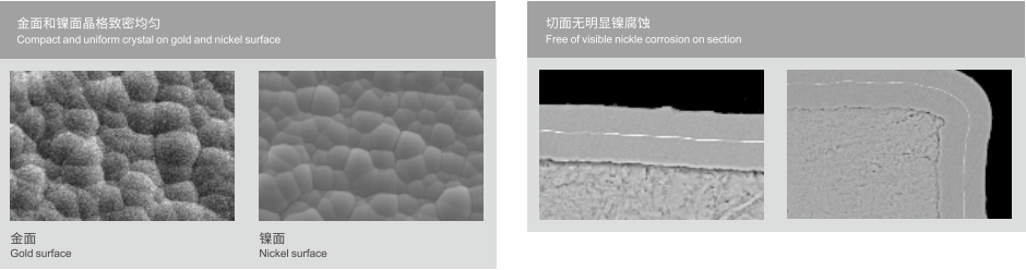 化學沉鎳金是PCB最終表面處理工藝一種,用于在金屬銅面沉上一層鎳和金,屬于中磷和中高磷系列,具有優異的可焊性、抗腐蝕性和耐磨性,是專門為PCB最終表面設計的理想工藝。
